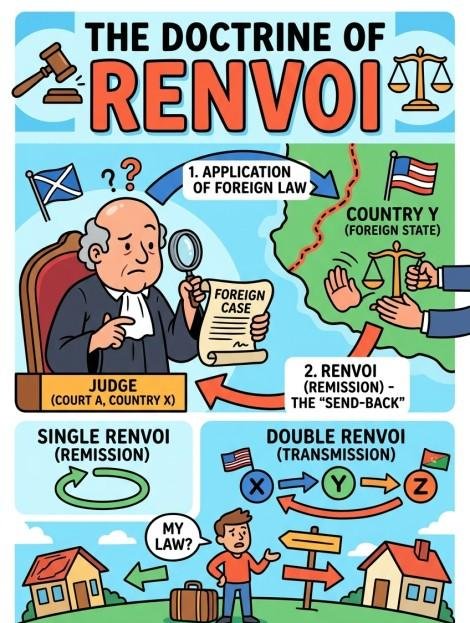 The doctrine of Renvoi is a significant and often debated principle of Private International law (conflict of laws). It arises in cases involving a foreign element, such as domicile, nationality, marriage, succession or property situated abroad. Whenever a court is required to apply the law of another country, a fundamental question emerges-