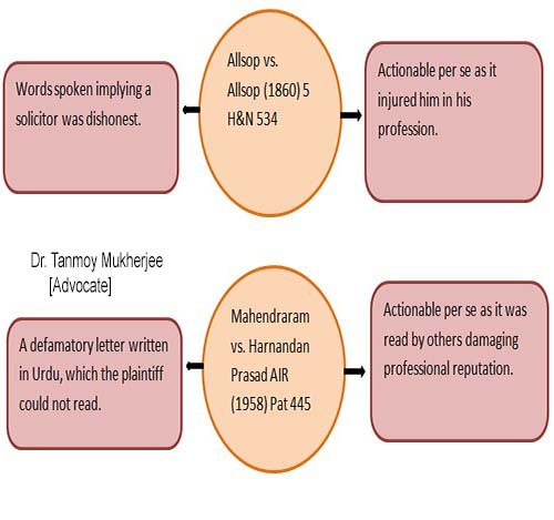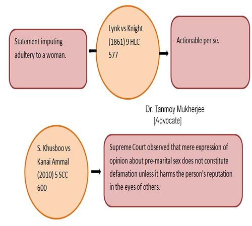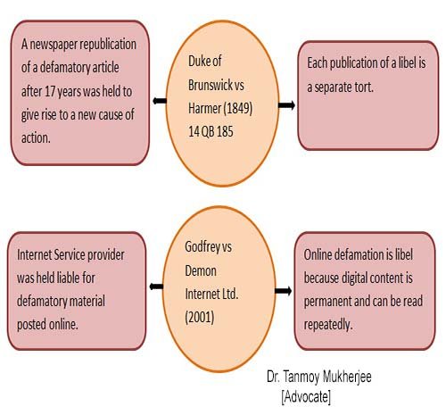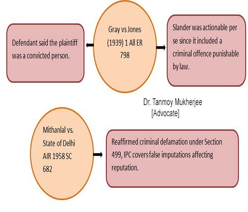 i) Cassidy v/s Daily Mirror Newspapers Ltd. (1929) 2 K.B. 331. ii) Monson v/s Tussauds (1894) 1 Q.B. 671 iii) D.P. Choudhury v/s Manjulata, A.I.R. 1997 Raj. 170. iv) Ram Jethmalani v/s Subramaniam Swamy, A.I.R. 2006 Del. 300.