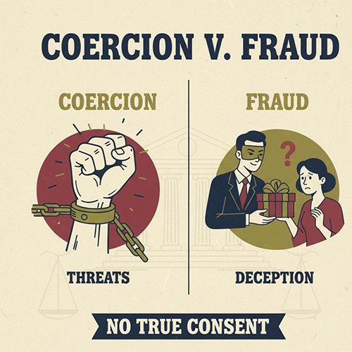 Physical or unlawful pressure (e.g., threats, unlawful detention).
