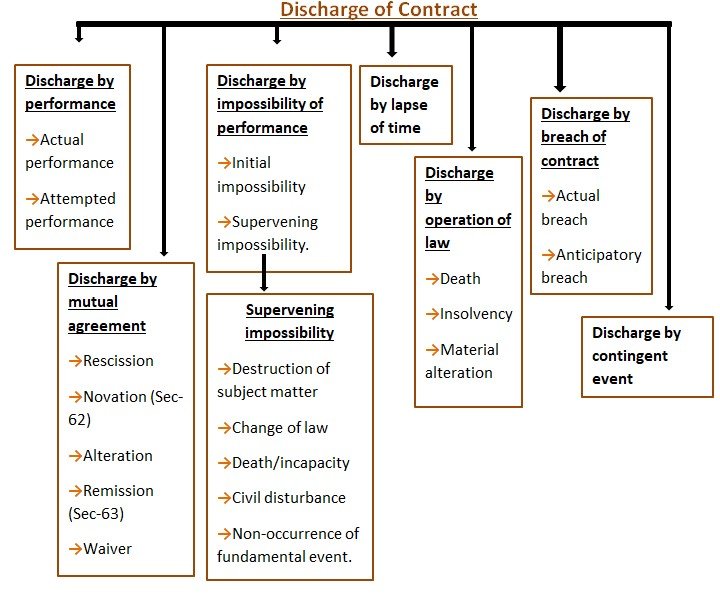 Discharge of contract refers to the cessation of enforceability of contractual obligation. After discharge, neither party can demand performance, though rights already accrued may survive.