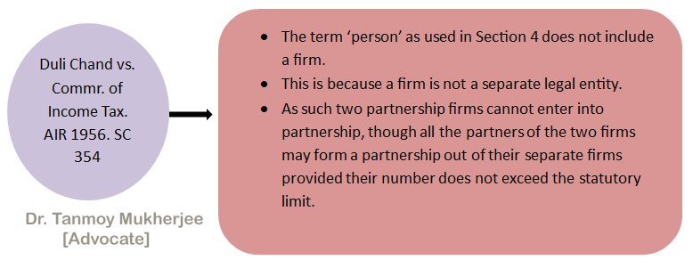 There should be minimum two capable persons to form a partnership. As regards the maximum number of partners in a firm, Sec. 11 of the Companies Act, 1956 provides that the number of partners in a firm carrying on banking business should not exceed ten and in any other business twenty. If the number of partners exceeds this limit, the partnership becomes an illegal association. It ceases to be a partnership if the number gets reduced to one by any reason.