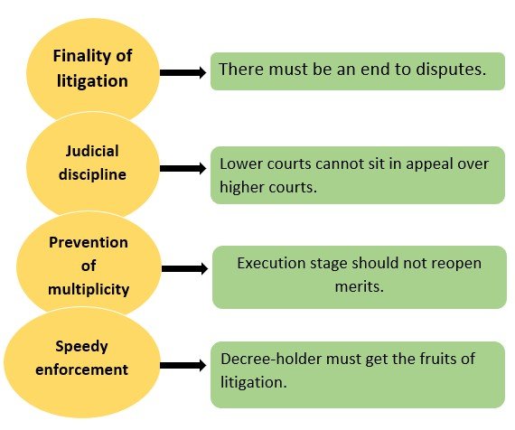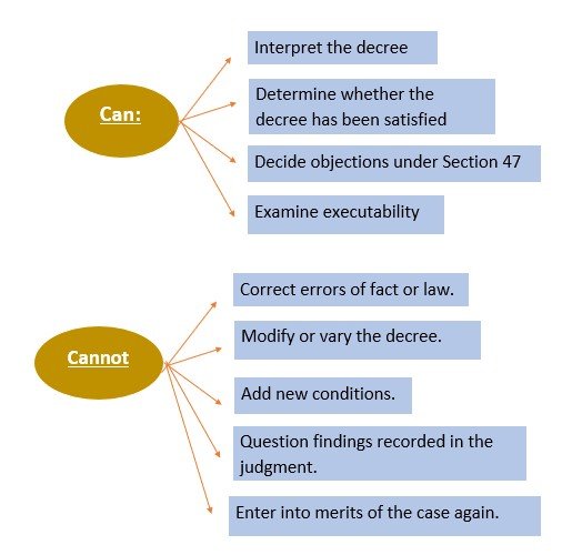 This principle is a settled rule of execution jurisprudence under the Code of Civil Procedure, 1908 (CPC) and is mainly traceable to Section 47 CPC, read with Order XXI CPC.