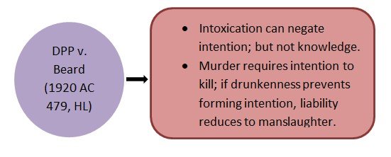 Intention-based offences: If drunkenness prevents the formation of intention, liability may reduce.