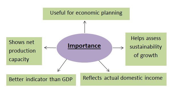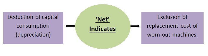 Net Domestic Product (NDP) measures the net value of final goods and services produced within the domestic territory of a country during one financial year after deducting depreciation.