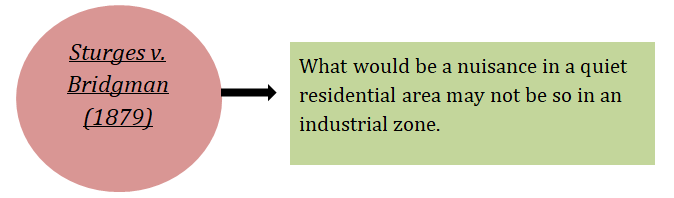 According to Pollock- “Nuisance is anything done to the hurt or annoyance of the lands, tenements or hereditaments of another, and not amounting to trespass.” Pollock distinguishes nuisance from trespass.