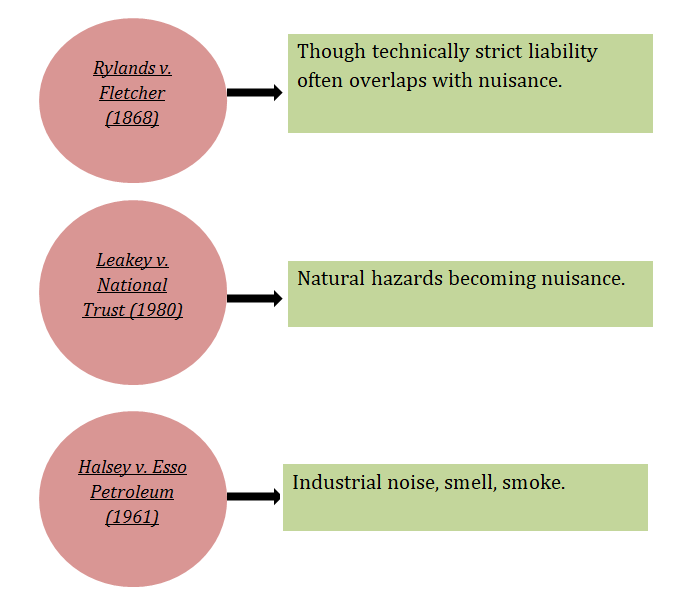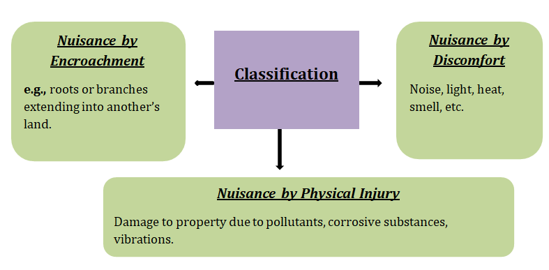 According to Salmond- “The wrong of nuisance consists in causing or allowing without lawful justification, the escape of any deleterious thing from one’s land to another’s.” Salmond emphasizes escape of something harmful — smoke, noise, fumes, smell, water etc.