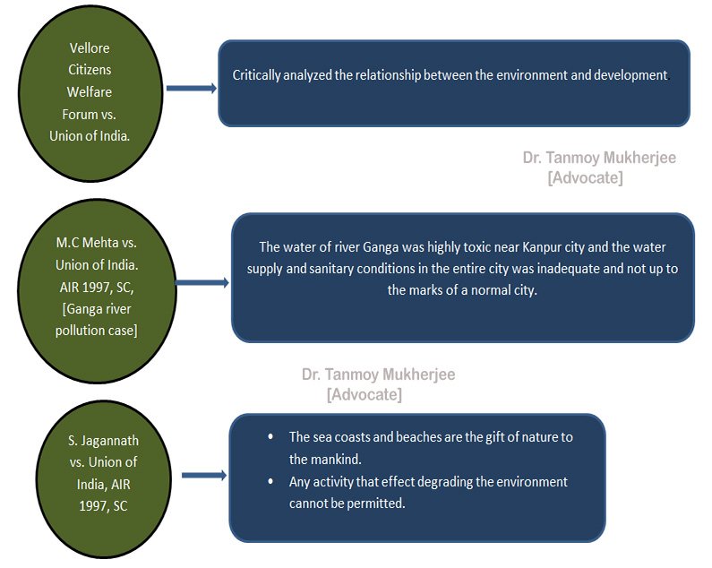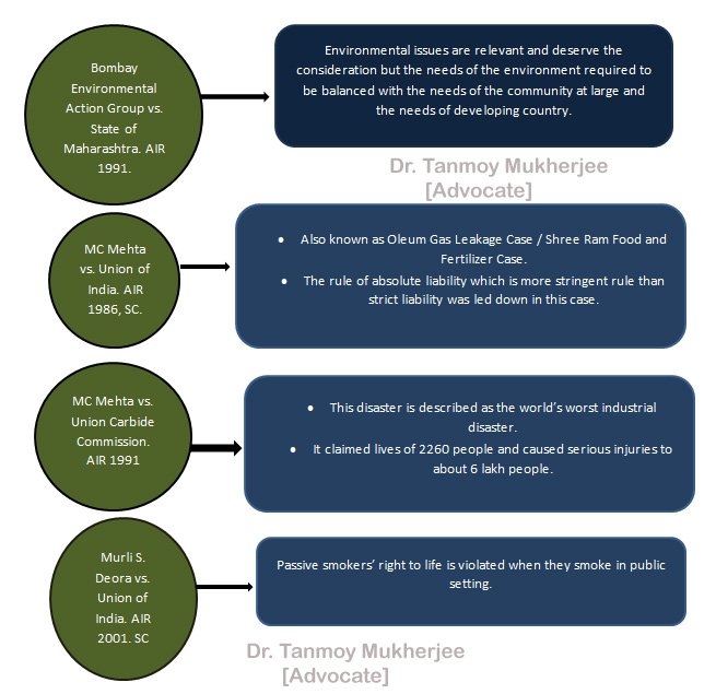 2. Various Constitution and International obligations along with the 42nd Amendment of 1976 and rights like Article 21, Article 19, Article 14, Article 32, and Article 226 in lieu with their environmental application have been incorporated in the present day scenario.